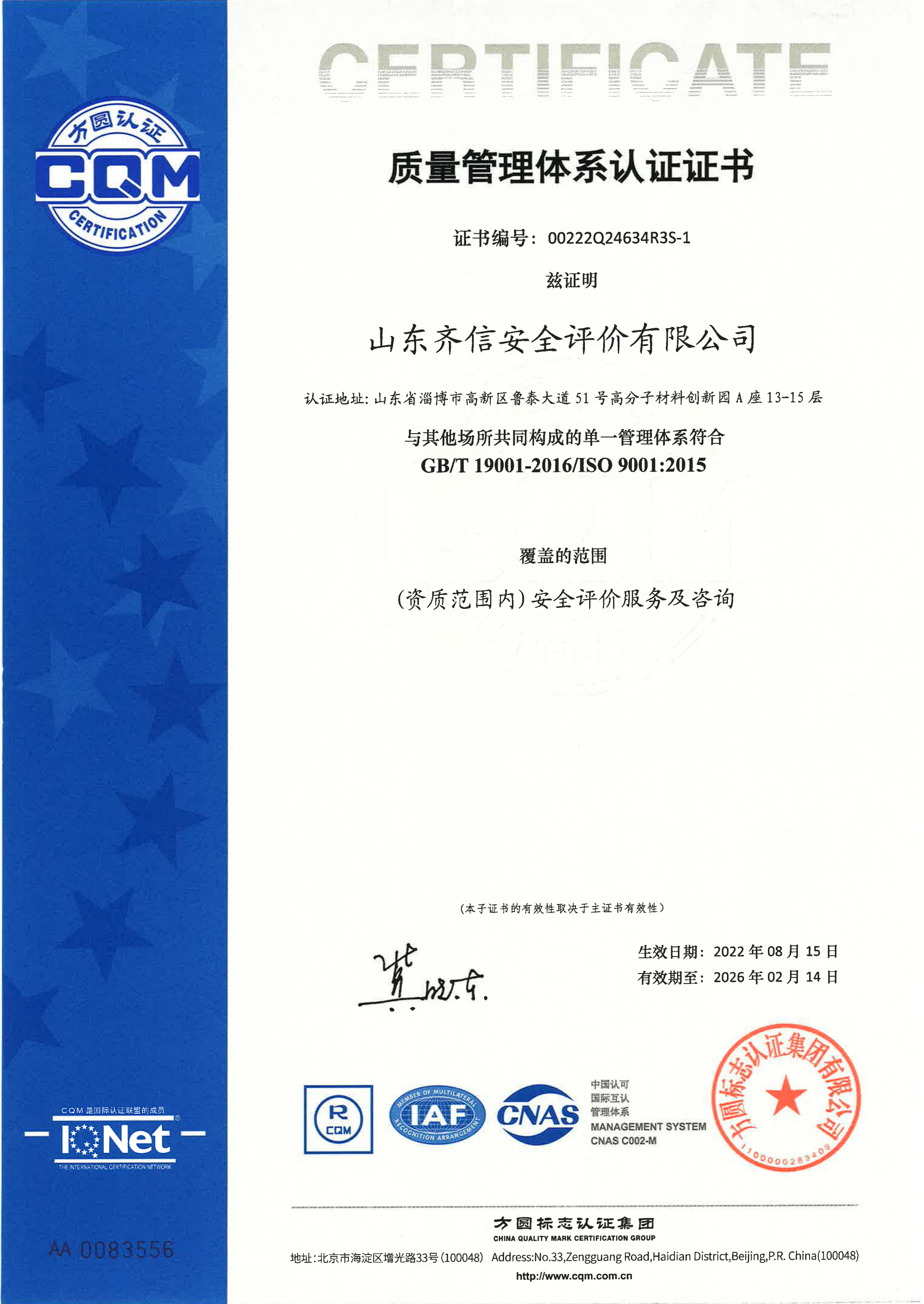 山东古天乐太阳集团城入口安全评价有限公司成立于2005年3月,注册资本300万元人民币,固定资产总值804.8728万元。法定代表人徐光明,注册地址及办公地址位于淄博高新区鲁泰大道51号高分子材料创新园A座13-15楼。2005年9月取得安全评价机构乙级资质。自国家应急部1号令实施以来,公司于2020年1月15日取得新安全评价资质,业务范围包括:陆上油气管道运输业;石油加工业,化学原料、化学品及医药制造业;金属冶炼。2018年12月21日取得安全生产标准化二级评审单位,评审范围:危险化学品、纺织、建材、轻工、冶金、机械。 公司现有人员41人,其中专职安全评价师37人,注册安全工程师26人,研究员1人、硕士5人、双学士1人,山东省安全专家库专家1人、教授级高工1人,高级工程师8人、工程师22人,专职危险化学品标准化评审员、工商贸标准化评审员30人,本科以上学