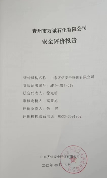 青州市万诚石化有限公司位于青州市弥河镇郝家村西侧。该加油站原名为青州市海龙加油站,2013年山东大唐油气有限公司租赁此站经营至今,因租赁合同到期山东大唐油气有限公司不再租赁经营,因此重新注册青州市万诚石化有限公司进行经营。该公司共有职工5人,其中安全管理人员1人,技术管理人员1人,经营油品为汽油和柴油。 该公司现有汽油双层罐2个,单罐容积30m3,柴油双层罐2个,单罐容积为30 m3,柴油折半计入,该加油站油罐总容积为90m3,为三级加油站。 依据《中华人民共和国安全生产法》(中华人民共和国主席令第13号,中华人民共和国主席令第88号修正)、《危险化学品安全管理条例》(中华人民共和国国务院令第645号)、《危险化学品经营许可证管理办法》(国家安全生产监督管理总局令 第55号 根据安监总局令第79号修订)的要求,危险化学品经营许可需进行安全评价,因此,青州市万诚石化有限公司委托山东古天乐太阳集团城入口安全评价有限公司进行经营危险化学品安全评价。 接受委托后,山东古天乐太阳集团城入口安全评价有限公司成立评价组,在进行资料与标准收集、现场调研、项目资料分析、危险与有害因素分析的基础上,依据《安全评价通则》(AQ8001-2007)、《山东省加油站安全评价导则》(鲁安监发〔2006〕114号),通过对该加油站安全管理、站址选择及总平面布置、加油工艺及设施、其他设施等方面的审查,选择相应的评价方法对其危险、有害因素进行辨识和评价,编写完成了《青州市万诚石化有限公司安全评价报告》。 |