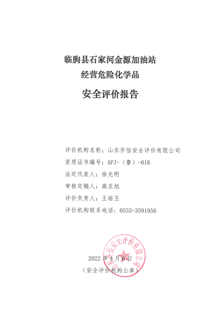 临朐县石家河金源加油站位于临朐县寺头镇石家河村石石路与石白路交汇处路西,该站成立于2011年5月5日,2017年10月26日取得临朐县行政审批服务局核发的新的营业执照,负责人为张树玲。该加油站主要从事汽油和柴油的经营,经营方式为零售。 该站于2018年1月18日取得成品油零售经营批准证书,有效期为2018年1月18日至2023年1月18日(证书编号:鲁油零售证书第3707093077号)。该站持有的《危险化学品经营许可证》(证书编号:鲁潍危化经[2019]012009号),有效期自2019年5月7日至2022年5月6日。该加油站在营业期间未发生安全事故。 该加油站主营汽油、柴油等成品油,共有单枪加油机4台,其中2台汽油加油机,2台柴油加油机(自北向南依次为-10#、0#、92#、95#),无自助加油机。该站设有埋地卧式内钢外玻璃纤维增强塑料双层储油罐4台,2台20m3汽油罐,2台20m3柴油罐(自西向东依次为95#、92#、0#、-10#),柴油折半后计入加油站储罐总容积为60m3,该站为三级加油站。该站采用自吸式加油工艺,加油管道为双层复合管材,管道最低点设检漏点,进油、通气、油气回收系统管道为流体输送用钢管,加油工艺管道全部埋地设置,且不穿越站房,设有双层罐、输油管道的泄漏在线监测系统,汽油卸油、加油设施均设置油气回收系统,油罐设置了液位仪,可以有效避免油料溢罐引发的安全事故。加油机设置了拉断阀。 |