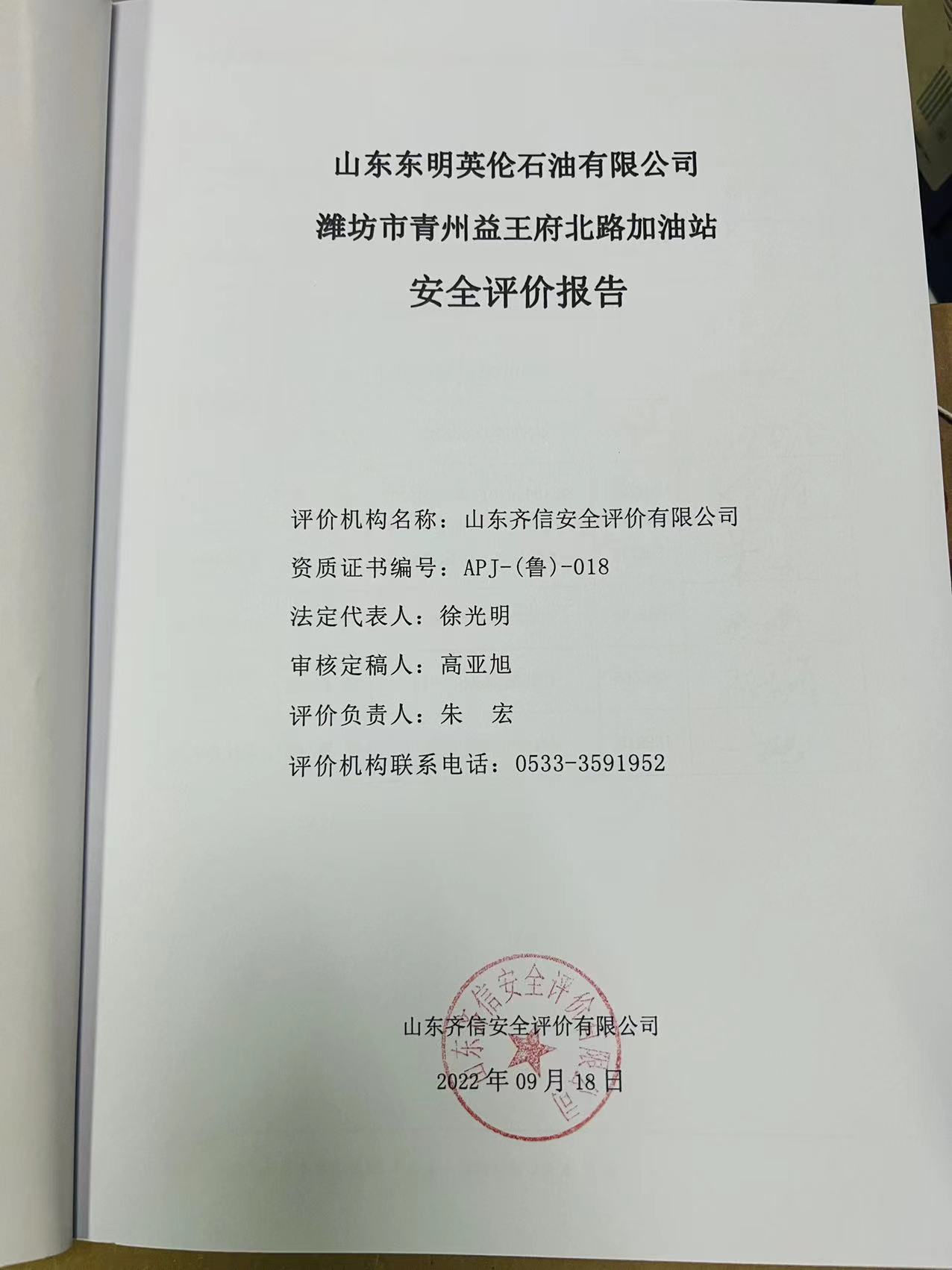 山东东明英伦石油有限公司潍坊市青州益王府北路加油站位于山东省青州市经济开发区益王府路与东京路交叉口西北角,该站于2018年9月25日与潍坊国能油品销售有限公司签订了油气站转让合同,青州新能天然气有限公司转让位于青州市益王府北路西侧、东京路北侧的青州新能天然气有限公司油气站给潍坊国能油品销售有限公司,油气站出让土地1686m2,院墙、楼房一栋,罩棚、油罐、气罐、加油机、加气机、压缩机、变压器及油气站正常营业的所有经营手续:成品油零售经营许可证、危化品经营许可证、消防验收合格证、燃气经营许可证等证照。 2019年1月11日潍坊海联新能源有限公司、潍坊华商新能源有限公司、潍坊汉能新能源有限公司及其实际控制人李传玉、赵娟与山东英伦石油有限公司签订了潍坊市青州益王府北路加油站租赁合同。青州新能天然气有限公司油气站实际产权人潍坊国能油品销售有限公司于2019年12月26日出具了以上租赁合同真实有效的证明文件。 该站现有山东英伦石油有限公司承租。成立于2019年12月11日,取得青州市行政审批服务局颁发的营业执照。该加油站主要从事汽油和柴油的经营,经营方式为零售,法定代表人为李开宽。类型为有限责任公司分公司(非自然人投资或控股的法人独资)。 该加油站现有埋地油罐4台,汽油双层罐2台,单罐容积30m3,柴油双层罐2台,单罐容积为30m3,柴油折半计入,该加油站油罐总容积为90m3,根据《汽车加油加气加氢站技术标准》(GB50156-2021)第3.0.9条之规定,为三级加油站。 该加油站因为法定代表人更换,于2022年05月30日更换了危险化学品经营许可证(证书编号:鲁潍危化经[2020]007001号),有效期至2023年1月09日;于2022年08月4日更换了成品油零售经营批准证书(证书编号:鲁油零售证书第3707113103号),有效期至2025年04月30日。 该加油站现有职工7人,其中站长1人,安全员1人,站长和安全员已通过安全生产知识和管理能力考核合格,并取证。 依据《中华人民共和国安全生产法》(中华人民共和国主席令[2002]第70号,根据2021年6月10日中华人民共和国第十三届全国人民代表大会常务委员会第二十九次会议《全国人民代表大会常务委员会关于修改〈中华人民共和国安全生产法〉的决定》修正)、《危险化学品安全管理条例》(国务院令第591号,根据国务院令第645号修订)、《危险化学品经营许可证管理办法》(国家安全生产监督管理总局令第55号,根据安监总局令第79号修订)的要求,危险化学品经营许可证换发需进行安全评价,因此,山东东明英伦石油有限公司潍坊市青州益王府北路加油站委托山东古天乐太阳集团城入口安全评价有限公司进行经营危险化学品安全评价。 接受委托后,山东古天乐太阳集团城入口安全评价有限公司成立评价组,在进行资料与标准收集、现场调研、项目资料分析、危险与有害因素分析的基础上,依据《安全评价通则》(AQ8001-2007)、《山东省加油站安全评价导则》(鲁安监发〔2006〕114号),通过对该加油站安全管理、站址选择及总平面布置、加油工艺及设施、其他设施等方面的审查,选择相应的评价方法对其危险、有害因素进行辨识和评价,编写完成了《山东东明英伦石油有限公司潍坊市青州益王府北路加油站安全评价报告》。 |
