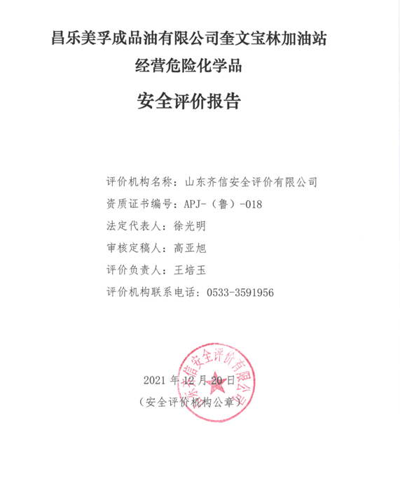 昌乐美孚成品油有限公司奎文宝林加油站经营危险化学品安全评价报告项目