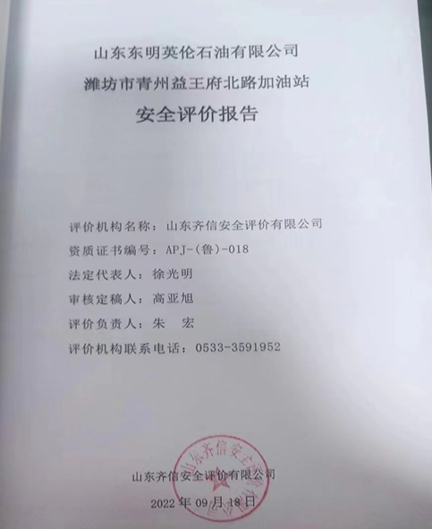 山东东明英伦石油有限公司潍坊市青州益王府北路加油站位于山东省青州市经济开发区益王府路与东京路交叉口西北角,该站于2018年9月25日与潍坊国能油品销售有限公司签订了油气站转让合同,青州新能天然气有限公司转让位于青州市益王府北路西侧、东京路北侧的青州新能天然气有限公司油气站给潍坊国能油品销售有限公司,油气站出让土地1686m2,院墙、楼房一栋,罩棚、油罐、气罐、加油机、加气机、压缩机、变压器及油气站正常营业的所有经营手续:成品油零售经营许可证、危化品经营许可证、消防验收合格证、燃气经营许可证等证照。 2019年1月11日潍坊海联新能源有限公司、潍坊华商新能源有限公司、潍坊汉能新能源有限公司及其实际控制人李传玉、赵娟与山东英伦石油有限公司签订了潍坊市青州益王府北路加油站租赁合同。青州新能天然气有限公司油气站实际产权人潍坊国能油品销售有限公司于2019年12月26日出具了以上租赁合同真实有效的证明文件。 该站现有山东英伦石油有限公司承租。成立于2019年12月11日,取得青州市行政审批服务局颁发的营业执照。该加油站主要从事汽油和柴油的经营,经营方式为零售,法定代表人为李开宽。类型为有限责任公司分公司(非自然人投资或控股的法人独资)。 该加油站现有埋地油罐4台,汽油双层罐2台,单罐容积30m3,柴油双层罐2台,单罐容积为30m3,柴油折半计入,该加油站油罐总容积为90m3,根据《汽车加油加气加氢站技术标准》(GB50156-2021)第3.0.9条之规定,为三级加油站。 该加油站因为法定代表人更换,于2022年05月30日更换了危险化学品经营许可证(证书编号:鲁潍危化经[2020]007001号),有效期至2023年1月09日;于2022年08月4日更换了成品油零售经营批准证书(证书编号:鲁油零售证书第3707113103号),有效期至2025年04月30日。 该加油站现有职工7人,其中站长1人,安全员1人,站长和安全员已通过安全生产知识和管理能力考核合格,并取证。 依据《中华人民共和国安全生产法》(中华人民共和国主席令[2002]第70号,根据2021年6月10日中华人民共和国第十三届全国人民代表大会常务委员会第二十九次会议《全国人民代表大会常务委员会关于修改〈中华人民共和国安全生产法〉的决定》修正)、《危险化学品安全管理条例》(国务院令第591号,根据国务院令第645号修订)、《危险化学品经营许可证管理办法》(国家安全生产监督管理总局令第55号,根据安监总局令第79号修订)的要求,危险化学品经营许可证换发需进行安全评价,因此,山东东明英伦石油有限公司潍坊市青州益王府北路加油站委托山东古天乐太阳集团城入口安全评价有限公司进行经营危险化学品安全评价。 接受委托后,山东古天乐太阳集团城入口安全评价有限公司成立评价组,在进行资料与标准收集、现场调研、项目资料分析、危险与有害因素分析的基础上,依据《安全评价通则》(AQ8001-2007)、《山东省加油站安全评价导则》(鲁安监发〔2006〕114号),通过对该加油站安全管理、站址选择及总平面布置、加油工艺及设施、其他设施等方面的审查,选择相应的评价方法对其危险、有害因素进行辨识和评价,编写完成了《山东东明英伦石油有限公司潍坊市青州益王府北路加油站安全评价报告》。  |