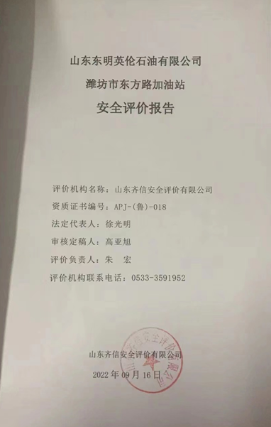 山东东明英伦石油有限公司潍坊市东方路加油站位于山东省潍坊高新区新城街道玉清社区东方路810号。该站原名为中国石油天然气股份有限公司山东潍坊销售总公司山东潍坊销售分公司第二十二加油站,后由山东东明英伦石油有限公司租赁,成立于2019年12月27日,取得潍坊市高新技术开发区市场监督管理局颁发的营业执照。该加油站主要从事汽油和柴油的经营,经营方式为零售,法定代表人为李开宽。类型为有限责任公司分公司(非自然人投资或控股的法人独资)。 该加油站现有汽油双层罐4个,单罐容积30m3,柴油双层罐1个,单罐容积为30m3,柴油折半计入,该加油站油罐总容积为135m3,根据《汽车加油加气加氢站技术标准》(GB50156-2021)第3.0.9条之规定,为二级加油站。 该加油站因法定代表人更换,于2022年5月25日更换了危险化学品经营许可证(证书编号:鲁潍危化[2019]130026号),有效期至2022年12月17日;于2022年6月15日更换了成品油零售经营许可证(证书编号:鲁油零售证书第3703013001),有效期至2026年9月8日。 该加油站现有职工11人,其中专职安全管理人员1人,主要负责人和安全员已通过安全生产知识和管理能力考核合格,并取证。 依据《中华人民共和国安全生产法》(中华人民共和国主席令[2002]第70号,根据2021年6月10日中华人民共和国第十三届全国人民代表大会常务委员会第二十九次会议《全国人民代表大会常务委员会关于修改〈中华人民共和国安全生产法〉的决定》修正)、《危险化学品安全管理条例》(国务院令第591号,根据国务院令第645号修订)、《危险化学品经营许可证管理办法》(国家安全生产监督管理总局令第55号,根据安监总局令第79号修订)的要求,危险化学品经营许可证换发需进行安全评价,因此,山东东明英伦石油有限公司潍坊市东方路加油站委托山东古天乐太阳集团城入口安全评价有限公司进行经营危险化学品安全评价。 接受委托后,山东古天乐太阳集团城入口安全评价有限公司成立评价组,在进行资料与标准收集、现场调研、项目资料分析、危险与有害因素分析的基础上,依据《安全评价通则》(AQ8001-2007)、《山东省加油站安全评价导则》(鲁安监发〔2006〕114号),通过对该加油站安全管理、站址选择及总平面布置、加油工艺及设施、其他设施等方面的审查,选择相应的评价方法对其危险、有害因素进行辨识和评价,编写完成了《山东东明英伦石油有限公司潍坊市东方路加油站安全评价报告》。  |