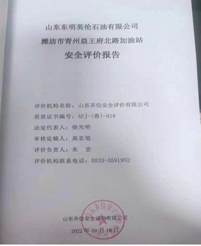 山东东明英伦石油有限公司潍坊市青州益王府北路加油站 安全评价