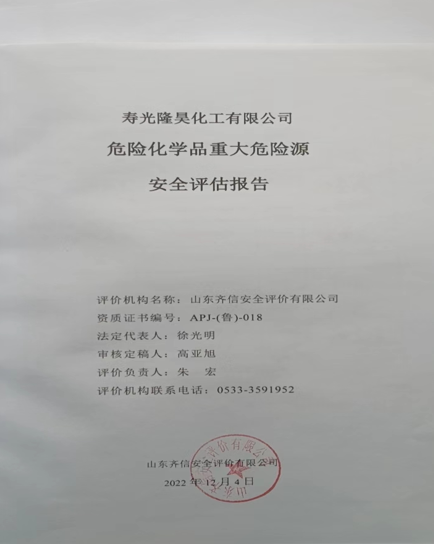 寿光隆昊化工有限公司成立于2008年04月22日,注册地位于寿光渤海工业园东海路3号(羊口镇南),法定代表人为丁忠锋。寿光隆昊化工有限公司是寿光卫东化工有限公司的子公司。经营范围包括一般项目:基础化学原料制造(不含危险化学品等许可类化学品的制造);化工产品销售(不含许可类化工产品);专用化学产品制造(不含危险化学品)(除依法须经批准的项目外,凭营业执照依法自主开展经营活动)许可项目:危险化学品生产;危险化学品经营;第二、三类监控化学品和第四类监控化学品中含磷、硫的特定有机化学品生产(依法须经批准的项目,经相关部门批准后方可开展经营活动,具体经营项目以审批结果为准)。  目前,该公司现有年产70000吨环保阻燃剂项目(一期工程)主要为:RDT-5生产装置(年产2000吨N,N’-乙撑双四溴邻苯二甲酰亚胺、副产3000吨氢溴酸、副产2823吨浓硫酸、副产202吨硫酸钠)、RDT-8生产装置(年产10000吨三(三溴苯氧基)三嗪、副产1635吨氯化钠)、RDT-9项目(年产10000吨氯代烷基多聚磷酸酯、副产6406吨盐酸、副产10吨氯化钠)、DPE项目(年产3000吨二苯乙烷、副产4000吨盐酸);年产70000吨环保阻燃剂项目(二期工程)主要包括:RDT-3项目(年产12000吨十溴二苯乙烷、副产氢溴酸22000吨)、八溴醚项目(年产八溴醚5000吨、副产氯化钠605吨)。 为满足客户需求,公司对现有DPE项目(年产3000吨二苯乙烷、副产4000吨盐酸)生产装置进行技术改造,二苯乙烷年产量不变,产品纯度由先前的99.9%提升到99.99%。项目现已改造完成,准备试生产。 该公司年产500吨六氟化硫项目于2009年7月通过安全竣工验收,于2009年7月21日取得安全生产许可证,于2012年7月21日、2015年7月21日、2018年7月21日进行了安全生产许可证延期换证,编号:(鲁)WH安许证字(2018)070206号,许可范围:六氟化硫500t/a、氢氟酸150t/a,有效期至2021年7月20日。年产70000吨环保阻燃剂项目(一期)安全设施竣工验收完成后,2019年9月26日变更了安全生许可证,编号:(鲁)WH安许证字(2018)070206号,许可范围:六氟化硫500t/a、氢氟酸150t/a,盐酸10406t/a、浓硫酸2823t/a、氢溴酸3000t/a,有效期至2021年7月20日。由于该公司六氟化硫生产装置已拆除,该公司于2021年6月25日变更了安全生产许可证,编号:(鲁)WH安许证字(2018)070206号,许可范围:盐酸10406t/a、浓硫酸2823t/a、氢溴酸3000t/a。年产70000吨环保阻燃剂项目(二期)安全设施竣工验收完成后,2021年10月09日变更了安全生许可证,编号:(鲁)WH安许证字(2021)070206号。 公司现有员工240人,成立了安全科。寿光隆昊化工有限公司是寿光卫东化工有限公司的子公司,寿光隆昊化工有限公司聘任注册安全工程师孙立军为安全总监。寿光隆昊化工有限公司配备了6名专职安全管理人员,其中2名为注册安全工程师,主要负责人与专职安全管理人员均取得安全资格证书,均在有效期内。 依据《危险化学品重大危险源辨识》(GB18218-2018),寿光隆昊化工有限公司生产过程中涉及的溴素(2361)、乙二胺(2572)、三氧化硫(1914)、双氧水(27.5%)(903)、三聚氯氰(1709)、环氧丙烷(979)、氯化氢(1475)、三氯氧磷(1858)、苯(49)、1,2-二氯乙烷(557)、异丁醇(1033)、3-氯丙烯(1440)、氨(2)、乙醇(2568)等属于重大危险源辨识范围内的危险化学品。 依据《危险化学品重大危险源监督管理暂行规定》(原国家安全生产监督管理总局令[2011]第40号,第79号修订)、《危险化学品重大危险源辨识》(GB18218-2018),受寿光隆昊化工有限公司委托,山东古天乐太阳集团城入口安全评价有限公司承担了该公司危险化学品重大危险源项目的安全评估工作。 评价组依据国家有关法律法规和标准规范,通过对企业危险化学品重大危险源的生产装置、储存设施运行及管理状况的现场检查、分析评价,找出危险化学品重大危险源监控和管理过程中存在的安全隐患和问题,提出相应的安全对策措施及建议,同时编制完成了评估报告。  |