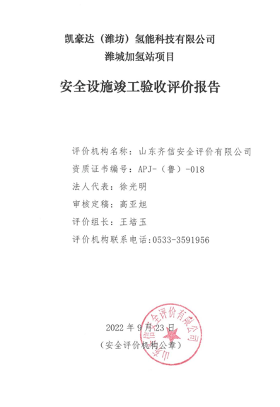 凯豪达(潍坊)氢能科技有限公司注册成立于2019年 12 月12日,统一社会信用代码 91370700MA3R72WJXY,注册资本3000 万元,法定代表人王子鉴,注册类型为有限责任公司,注册地址山东省潍坊市潍城区宝通西街3666号(潍城区宝通西街以南、清平路以西)。经营范围:氢能源技术开发、服务及转让:基础设施建设、运营:加氢站成套设备生产、销售;机械设备、水电设备、气体纯化设备生产及销售;供氢系统及加氢设备研发销售、加氢站设计与工程技术服务、能源动力装置的研发和系统集成等、电池技术研发及生产销售、储能系统研发及项目实施;设计、制作、代理、发布广告;国家允许的货物及技术进出口贸易。 该项目为凯豪达(潍坊)氢能科技有限公司租赁潍坊联运有限公司场地进行建设。 为顺应市场需求和公司发展需要,潍坊联运有限公司在潍坊市潍城区南关街道宝通西街以南,清平路以西、规划支路以东建设潍坊公路客运综合配套服务场站一期项目。该一期项目总用地面积 26667m2,规划总建筑面积约 7500m2,主要由综合用房、检测车间,加油、加氢站及配套设施,汽车充电桩等组成。该项目于 2020 年 7 月 2 日   取 得 《 山 东 省 建 设 项 目 备 案 证 明 》( 项 目 代 码 :   2020-370702-54-03-062905),建设起止年限 2020 年至 2022 年,项目投资 10600万元。 凯豪达(潍坊)氢能科技有限公司潍城加氢站项目属于潍坊联运有限公司潍坊公路客运综合配套服务场站一期项目建设内容的一部分。该项目投资 2000万元,全部由凯豪达(潍坊)氢能科技有限公司出资建设并独立运营管理。  |