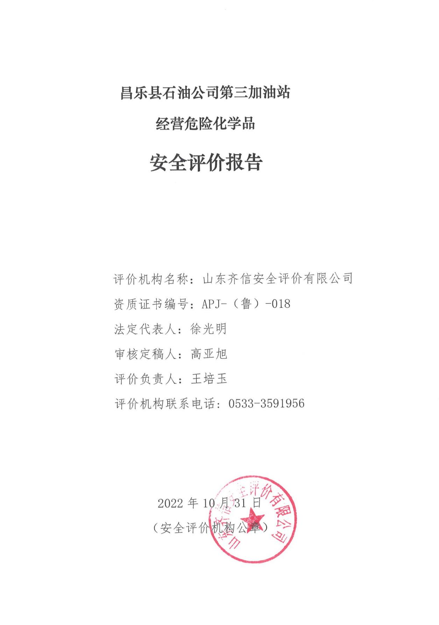 昌乐县石油公司第三加油站位于昌乐县城南街道边下村西大沂路西侧,成立于2008年01月18日,2020年09月02日取得昌乐县行政审批服务局核发的新的营业执照,负责人为刘亮。昌乐该加油站主要从事汽油和柴油的经营,经营方式为零售。 昌乐县石油公司第三加油站为昌乐县石油公司下属分公司,昌乐县石油公司成立于1994年2月,位于昌乐县王潍路西环路口,法人代表孔祥民,主要经营:汽油、柴油零售;零售预包装食品、保健食品;汽车清洗服务,润滑油、日用百货、化纤及化工产品(不含危险化学品)、针纺织品、汽车装饰装具、汽车零部件销售。 该站于2020年12月01日取得《成品油零售经营批准证书》,有效期为2020年12月01日至2025年12月01日(证书编号:鲁油零售证书第3707053024号)。该站持有的《危险化学品经营许可证》(证书编号:鲁潍危化经[2019]011046号),有效期自2019年11月07日至2022年11月06日。该加油站在营业期间未发生安全事故。  |