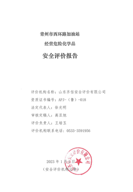 青州市西环路加油站位于山东省潍坊市青州市邵庄镇盛家车马村,该站成立于2017年3月7日,2020年9月29日取得青州市行政审批服务局核发的新营业执照,类型为个人独资企业,投资人为王学兵。该加油站主要从事汽油和柴油的经营,经营方式为零售。 该加油站成品油零售经营批准证书有效期为2021年1月19日至2026年1月19日(证书编号:鲁油零售证书第3707113100号)。该站持有的危险化学品经营许可证(证书编号:鲁潍危化经【2020】007002号),有效期自2020年2月4日至2023年2月3日。该加油站在营业期间未发生安全事故。 该加油站现有从业人员7人,其中安全管理人员1名。该站已建立了安全生产责任制度、安全管理制度和安全操作规程等,制定了事故应急救援预案,成立了安全生产领导小组,配备了安全员,主要负责人和安全员取得了安全生产知识和管理能力考核合格证。其他从业人员经本单位培训考核合格。 该站设埋地储油罐区1处,设5台SF埋地储油罐,其中40m3柴油储罐2台,40m3汽油储罐3台,总容量200m3,柴油折半计总容积为160m3,依据《汽车加油加气加氢站技术标准》GB50156-2021第3.0.9条,该加油站为一级加油站。 该加油站设有4台双枪双油品加油机,其中汽油加油机3台、柴油加油机1台。 该加油站采用自吸式加油工艺。加油管道为双层复合管材,管道最低点设检漏点,进油、通气、油气回收系统管道为流体输送用无缝钢管,加油工艺管道全部埋地设置,且不穿越站房,双层油罐设置防渗漏在线检测仪,汽油卸油、加油设施均设置油气回收系统,油罐设置了高液位报警功能的液位监测系统,可以有效避免油料溢罐引发的安全事故。  |