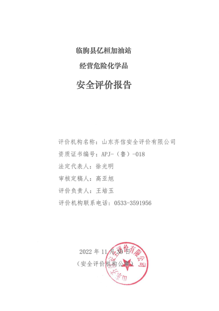 临朐县亿桓加油站位于山东省潍坊市临朐县冶源镇迟家庄村路口北100米路西,成立于2017年02月06日,2017年08月16日取得临朐县市场监督管理局核发的新的营业执照,投资人为曾庆永。该加油站主要从事汽油和柴油的经营,经营方式为零售。 临朐县亿桓加油站前身为临朐县昌通油业销售有限公司的加油站。2006年12月30日中国石油化工股份有限公司与临朐县昌通油业销售有限公司签订加油站租赁合同,更名为中国石化销售有限公司山东潍坊临朐第二十二加油站;2016年12月中国石油化工股份有限公司停租该加油站之后,曾庆永出资收购该加油站,加油站更名为临朐县亿桓加油站。 该站于2022年01月14日取得成品油零售经营批准证书,该加油站成品油零售经营批准证书有效期为2022年01月14日至2027年01月14日(证书编号:鲁油零售证书第3707091021号)。该站持有的《危险化学品经营许可证》(证书编号:鲁潍危化经[2020]012001号),有效期自2020年1月23日至2023年1月22日。该加油站在营业期间未发生安全事故。 该加油站主营汽油、柴油等成品油,共有六枪汽油柴油加油机2台,汽油主要经营92#、95#,柴油冬季经营-10#,其它季节经营0#,无自助加油机。该站设有埋地卧式内钢外玻璃纤维增强塑料双层储罐3台,其中30m3汽油储罐2台,50m3柴油储罐1台(储油罐内部进行间隔后,油罐形成2个容量25m3的分仓,分仓均储存柴油)(油罐自西向东依次为95#、92#、0#)。柴油折半后计入加油站储罐总容积为85m3,该站为三级加油站。  |