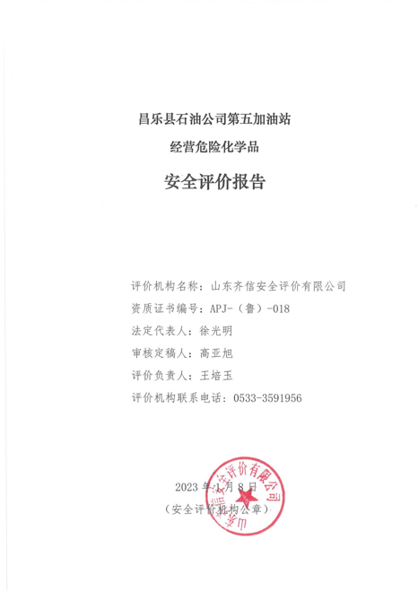 昌乐县石油公司第五加油站位于昌乐县乔官镇政府驻地西河下村南大沂路东侧,成立于2011年02月25日,2020年09月02日取得昌乐县行政审批服务局核发的新的营业执照,负责人为刘亮。该加油站主要从事汽油和柴油的经营,经营方式为零售。 昌乐县石油公司第五加油站为昌乐县石油公司下属分公司,昌乐县石油公司成立于1994年2月,位于昌乐县王潍路西环路口,法人代表孔祥民,主要经营:汽油、柴油零售;零售预包装食品、保健食品;汽车清洗服务,润滑油、日用百货、化纤及化工产品(不含危险化学品)、针纺织品、汽车装饰装具、汽车零部件销售。 该站于2020年12月01日取得《成品油零售经营批准证书》,有效期为2020年12月01日至2025年12月01日(证书编号:鲁油零售证书第3707053053号)。该站持有的《危险化学品经营许可证》(证书编号:鲁潍危化经[2019]011058号),有效期自2012年1月15日至2023年1月14日。该加油站在营业期间未发生安全事故。  |