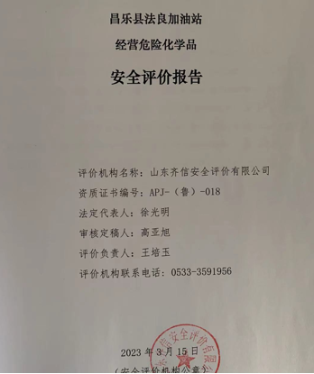 昌乐县法良加油站位于昌乐县鄌郚镇克家洼村北大沂路北侧,前身为白塔金声加油站,始建于1998年。该站2017年7月19日取得昌乐县市场监督管理局核发的营业执照,法定代表人为张振明。该加油站主要从事汽油和柴油的经营,经营方式为零售。 该站于2020年12月18日取得《成品油零售经营批准证书》,有效期为2020年12月18日至2025年12月18日(证书编号:鲁油零售证书第3707053040号)。该站持有的《危险化学品经营许可证》(证书编号:鲁潍危化经[2020]011002号),有效期自2020年4月11日至2023年4月10日。该加油站在营业期间未发生安全事故。 该加油站主营汽油、柴油等成品油,共有加油机4台,其中单枪汽油加油机2台,单枪柴油加油机2台;汽油主要经营92#、95#,柴油冬季经营-10#,其它季节经营0#,无自助加油机。该站设埋地卧式内钢外玻璃纤维增强塑料双层储油罐4台,其中汽油储罐2台,容积均为30m3,柴油储罐2台,容积均为30m3(油罐自西向东依次为0#、92#、95#、-10#)。柴油折半后计入加油站储罐总容积为90m3,该站为三级加油站。  |