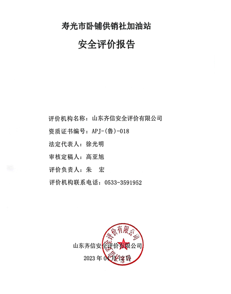 寿光市卧铺供销社加油站成立于1989年12月10日,注册地位于卧铺乡吴家村,法定代表人为曹永富。经营范围包括带有储存设施的经营:汽油、柴油(有效期限以许可证为准);销售:润滑油(依法须经批准的项目,经相关部门批准后方可开展经营活动)。 该加油站现有4台储罐,其中汽油罐2台,柴油罐2台,具体为92#汽油双层罐2个,容积15m3,柴油双层罐2个,容积15m3,柴油罐随季节调整品种。柴油折半计入,该站储罐总容积为45m?,根据《汽车加油加气加氢站技术标准》(GB50156-2021)第3.0.9条之规定,为三级加油站。 该加油站已取得成品油零售经营批准证书,证书编号为:鲁油零售证书第3707123026号,证书有效期为2021年2月25日至2026年2月25日。因《危险化学品目录(2015版)》(应急管理部 工业和信息化部 公安部 生态环境部 交通运输部 农业农村部 卫生健康委 市场监管总局 铁路局   民航局 公告[2022]第8号)将“1674柴油[闭杯闪点≤60℃]”调整为“1674柴油”),2023年2月22日换发了危险化学品经营许可证,证书编号为:鲁潍危化经[2020]005045号,有效期2020年08月10日至2023年08月09日。该站经营期间未发生安全事故。 该加油站现有职工2人,其中站长1人,安全员1人,站长兼任加油员,站长、安全员均已通过安全生产知识和管理能力考核合格,并已取证。 依据《中华人民共和国安全生产法》(中华人民共和国主席令[2002]第70号,根据2021年6月10日中华人民共和国第十三届全国人民代表大会常务委员会第二十九次会议《全国人民代表大会常务委员会关于修改〈中华人民共和国安全生产法〉的决定》修正)、《危险化学品安全管理条例》(国务院令第591号,根据国务院令第645号修订)、《危险化学品经营许可证管理办法》(国家安全生产监督管理总局令第55号,根据安监总局令第79号修订)的要求,危险化学品经营许可证换发需进行安全评价,因此,寿光市卧铺供销社加油站委托山东古天乐太阳集团城入口安全评价有限公司进行经营危险化学品安全评价。 接受委托后,山东古天乐太阳集团城入口安全评价有限公司成立评价组,在进行资料与标准收集、现场调研、项目资料分析、危险与有害因素分析的基础上,依据《安全评价通则》(AQ8001-2007)、《山东省加油站安全评价导则》(鲁安监发〔2006〕114号),通过对该加油站安全管理、站址选择及总平面布置、加油工艺及设施、其他设施等方面的审查,选择相应的评价方法对其危险、有害因素进行辨识和评价,编写完成了《寿光市卧铺供销社加油站安全评价报告》。  |