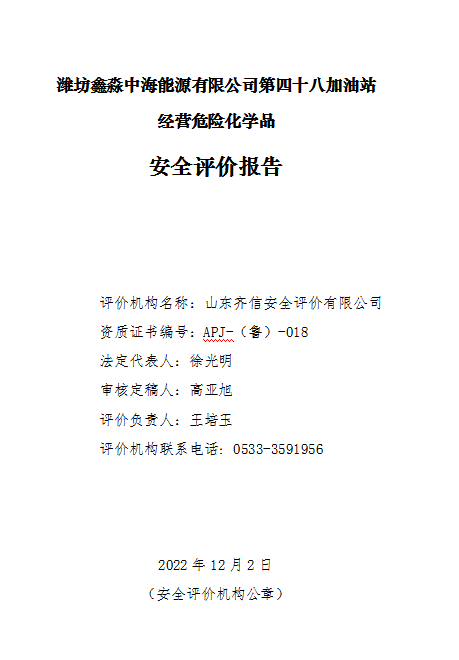 潍坊鑫淼中海能源有限公司第四十八加油站位于山东省潍坊市昌乐县朱刘街道潍昌路91号1、2幢,该站成立于2016年12月29日,于2018年05月09日取得昌乐县市场监督管理局核发的新的营业执照,法定代表人为张金水。该加油站主要从事汽油和柴油的经营,经营方式为零售。 该加油站主营汽油、柴油等成品油,共有四枪加油机4台,四枪双油品加油机1台,四枪三油品加油机3台,汽油主要经营92#、95#,柴油冬季经营-10#,其它季节经营0#。无自助加油机。该站设有埋地卧式内钢外玻璃纤维增强塑料双层储罐4台,其中30m3汽油储罐2台,30m3柴油储罐2台(油罐自西向东依次为0#、-10#、92#、95#)。柴油折半后计入加油站储罐总容积为90m3,该站为三级加油站。该站采用潜油泵式加油工艺,加油管道为KPS双层复合管材,进油、通气、油气回收系统管道为流体输送用无缝钢管,加油工艺管道全部埋地设置,且不穿越站房。加油机加油软管设置安全拉断阀,其底部的供油管道设置剪切阀。油罐设置了高液位报警功能的液位监测系统,可以有效避免油料溢罐引发的安全事故。加油机机体、值班室内设置紧急切断按钮,并实现手动复位。加油站设有油罐渗漏检测立管、汽油卸油油气回收系统、加油油气回收系统和三次油气回收系统。  |