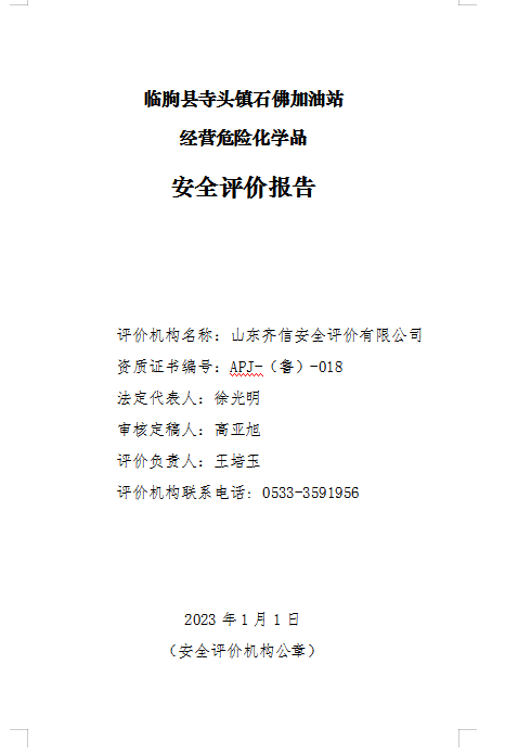 临朐县寺头镇石佛加油站位于山东省潍坊市临朐县寺头镇石佛村(临九路21公里左侧),成立于2014年08月07日,2018年12月13日取得临朐县市场监督管理局核发的新的营业执照,投资人为宫滔。该加油站主要从事汽油和柴油的经营,经营方式为零售。 该加油站主营汽油、柴油等成品油,共有加油机6台,其中单枪柴油加油机2台,双枪柴油加油机1台,单枪汽油加油机2台,双枪汽油加油机1台,汽油主要经营92#、95#,柴油冬季经营-10#,其它季节经营0#,无自助加油机。该站设有埋地卧式内钢外玻璃纤维增强塑料双层储罐6台,其中20m3汽油储罐2台,20m3柴油储罐2台,闲置储罐2台(油罐自西北向东南依次为0#、0#、95#、92#、闲置储罐)。柴油折半后计入加油站储罐总容积为60m3,该站为三级加油站。该站采用自吸式加油工艺,出油管道为KPS双层复合管材,管道最低点设检漏点,进油、通气、油气回收系统管道为流体输送用无缝钢管,加油工艺管道全部埋地设置,且不穿越站房。加油机加油软管设置安全拉断阀;油罐设置了高液位报警功能的液位监测系统,可以有效避免油料溢罐引发的安全事故。加油机机体、值班室内设置紧急切断按钮,并实现手动复位。加油站设有汽油卸油油气回收系统、加油油气回收系统和三次油气回收系统。  |