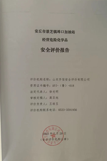 安丘市景芝镇埠口加油站位于山东省潍坊市安丘市景芝镇埠口村景黄路东侧,成立于2003年3月11日,该站于2017年6月12日取得安丘市市场监督管理局核发的营业执照,投资人为高天为。该加油站主要从事汽油和柴油的经营,经营方式为零售。 该站于2022年8月2日取得《成品油零售经营批准证书》,有效期为2022年8月2日至2027年8月2日(证书编号:鲁油零售证书第3707063021号)。该站持有的《危险化学品经营许可证》(证书编号:鲁潍危化经[2020]008015号),有效期自2020年7月4日至2023年7月3日。 该加油站主营汽油、柴油等成品油,共有加油机4台,其中92#、95#四枪加油机1台,92#、0#四枪加油机1台,停用加油机2台,柴油冬季经营-10#,其它季节经营0#,无自助加油机。该站设埋地卧式内钢外玻璃纤维增强塑料双层储油罐4台,其中汽油储罐2台,容积均为20m3,柴油储罐2台,容积均为30m3(油罐自北向南依次为0#、-10#、92#、95#),柴油折半后计入加油站储罐总容积为70m3,该站为三级加油站。该站采用自吸式加油工艺,该站加油管道为双层复合管材,管道最低点设检漏点,进油、通气、油气回收系统管道为流体输送用无缝钢管,加油工艺管道全部埋地设置,且不穿越站房。加油机加油软管设置安全拉断阀,底部输油管线设置剪切阀。油罐设有带有高液位报警功能的液位监测报警系统、渗漏检测功能的报警系统;双层管道设置渗漏检测报警系统,可以有效避免油料溢罐引发的安全事故。加油机机体、值班室内设置紧急切断按钮,并实现手动复位。加油站设有油罐渗漏检测立管、汽油卸油油气回收系统、加油油气回收系统和三次油气回收系统。  |