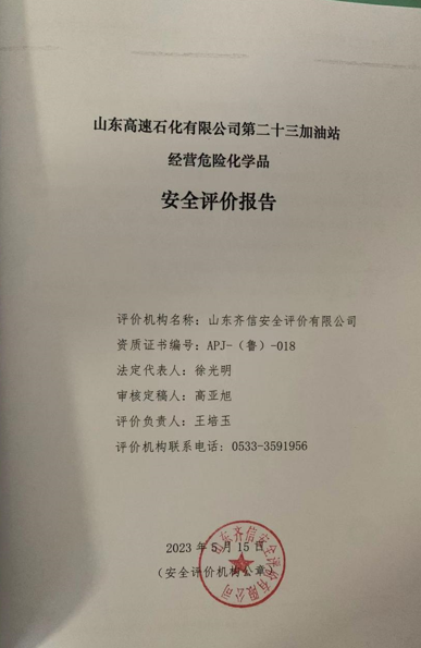 山东高速石化有限公司第二十三加油站位于潍坊市潍城区于河镇驻地潍高路北侧,前身为供销社加油站,始建于2001年,该站2022年05月12日取得潍坊市潍城区行政审批服务局核发的新营业执照,负责人为刘世仁。该加油站主要从事汽油和柴油的经营,经营方式为零售。 该站原为潍坊市潍城区于河供销合作社下属供销社加油站,2006年4月5日潍坊市潍城区于河供销合作社与山东润元高速公路油气管理有限公司签订加油站租赁合同,加油站名称变更为山东润元高速公路油气管理有限公司第二十三加油站。2017年企业名称由山东润元高速公路油气管理有限公司第二十三加油站变更为山东高速石化有限公司第二十三加油站。 该站于2022年07月04日取得《成品油零售经营批准证书》,有效期为2020年11月7日至2025年11月7日(证书编号:鲁油零售证书第3707133007号)。该站持有的《危险化学品经营许可证》(证书编号:鲁潍危化经[2020]002029号),有效期自2020年8月12日至2023年8月11日。 该加油站主营汽油、柴油等成品油,共有加油机4台,其中汽油双枪加油机2台,柴油单枪加油机2台(加油机呈南北排布置,北侧一排2台加油机自西向东依次92#/92#、95#/95#,南侧一排2台加油机均为0#)汽油主要经营92#、95#,柴油冬季经营-10#,其它季节经营0#,无自助加油机。该站设承重式埋地内钢外玻璃纤维增强塑料双层储油罐3台,其中汽油储罐2台,容积均为30m3,柴油储罐1台,容积均为30m3(油罐自北向南依次为92#、95#、0#),柴油折半后计入加油站储罐总容积为75m3,该站为三级加油站。该站采用自吸式加油工艺,设置单独的进油管及罐内底阀。该站加油管道为双层复合管材,管道最低点设检漏点,进油、通气、油气回收系统管道为流体输送用无缝钢管,加油工艺管道全部埋地设置,且不穿越站房。加油机加油软管设置安全拉断阀,底部输油管线设置剪切阀。油罐设有带有高液位报警功能的液位监测报警系统、渗漏检测功能的报警系统;双层管道设置渗漏检测报警系统,可以有效避免油料泄漏引发的安全事故。加油机机体、值班室内设置紧急切断按钮,并实现手动复位。加油站设有油罐渗漏检测立管、汽油卸油油气回收系统、加油油气回收系统和三次油气回收系统。  |