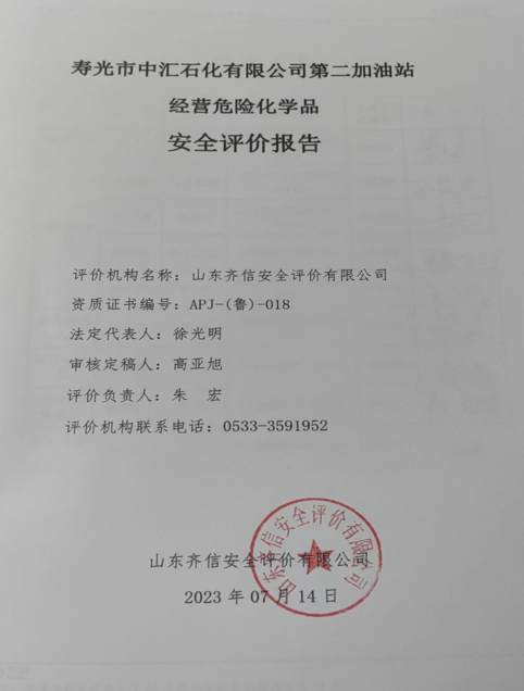 寿光市中汇石化有限公司第二加油站成立于2016年11月02日,注册地位于寿光市古城街道卧甲路以东南辛路以北,负责人为苗文强。经营范围包括带有储存设施的经营:汽油、柴油(以上范围凭许可证经营);销售:润滑油、日用百货、煤炭、焦炭、建材、钢材(依法须经批准的项目,经相关部门批准后方可开展经营活动)。 该加油站现有4台储罐,其中汽油罐2台,柴油罐2台,具体为92#汽油双层罐1个,容积50m3,95#汽油双层罐1个,容积50m3,柴油双层罐2个,容积为50m3,柴油罐随季节调整品种。柴油折半计入,该站储罐总容积为150m?,根据《汽车加油加气加氢站技术标准》(GB50156-2021)第3.0.9条之规定,为二级加油站。 该加油站已取得成品油零售经营批准证书,证书编号为:鲁油零售证书第3707123085号,证书有效期为2022年01月26日至2027年01月26日。因《危险化学品目录(2015版)》(应急管理部 工业和信息化部 公安部 生态环境部 交通运输部 农业农村部 卫生健康委 市场监管总局 铁路局 民航局 公告[2022]第8号)将“1674柴油[闭杯闪点≤60℃]”调整为“1674柴油”),2023年2月22日换发了危险化学品经营许可证,证书编号为:鲁潍危化经[2020]005086号,有效期2020年10月13日至2023年10月12日。该站经营期间未发生安全事故。该站经营期间未发生安全事故。 该加油站现有职工6人,其中站长1人,安全员1人,站长、安全员均已通过安全生产知识和管理能力考核合格,并已取证。 依据《中华人民共和国安全生产法》(中华人民共和国主席令[2002]第70号,根据2021年6月10日中华人民共和国第十三届全国人民代表大会常务委员会第二十九次会议《全国人民代表大会常务委员会关于修改〈中华人民共和国安全生产法〉的决定》修正)、《危险化学品安全管理条例》(国务院令第591号,根据国务院令第645号修订)、《危险化学品经营许可证管理办法》(国家安全生产监督管理总局令第55号,根据安监总局令第79号修订)的要求,危险化学品经营许可证换发需进行安全评价,因此,寿光市中汇石化有限公司第二加油站委托山东古天乐太阳集团城入口安全评价有限公司进行经营危险化学品安全评价。 接受委托后,山东古天乐太阳集团城入口安全评价有限公司成立评价组,在进行资料与标准收集、现场调研、项目资料分析、危险与有害因素分析的基础上,依据《安全评价通则》(AQ8001-2007)、《山东省加油站安全评价导则》(鲁安监发〔2006〕114号),通过对该加油站安全管理、站址选择及总平面布置、加油工艺及设施、其他设施等方面的审查,选择相应的评价方法对其危险、有害因素进行辨识和评价,编写完成了《寿光市中汇石化有限公司第二加油站安全评价报告》。 |