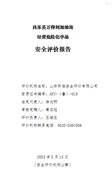 昌乐县万得利加油站位于昌乐县营丘镇李家河岔村北,该站成立于2006年4月,2021年12月22日取得昌乐县行政审批服务局核发的营业执照,投资人为李刚。该加油站主要从事汽油和柴油的经营,经营方式为零售。     2022年05月12日取得成品油零售经营批准证书(证书编号:鲁油零售证书第3707053066号),有效期自2022年5月12日至2027年5月12日。该站持有的《危险化学品经营许可证》(登记编号:鲁潍危化经[2017]011008号),有效期自2020年4月8日至2023年4月7日。 该加油站主营汽油、柴油等成品油,共有加油机8台,其中双枪汽油加油机2台,四枪汽油加油机2台,四枪柴油加油机2台,双枪柴油加油机2台(停用),汽油主要经营92#、95#,柴油冬季经营-10#,其它季节经营0#,无自助加油机。该站设埋地卧式内钢外玻璃纤维增强塑料双层储油罐4台,其中汽油储罐2台,容积均为30m3,柴油储罐2台,容积均为30m3(油罐自西向东依次为0#、95#、92#、-10#),柴油折半后计入加油站储罐总容积为90m3,该站为三级加油站。该站同时采用潜油泵式和自吸式两种加油工艺,95#加油枪采用自吸式加油工艺, 其余加油枪采用油罐内设潜油泵式加油工艺。该站加油管道为双层复合管材,管道最低点设检漏点,进油、通气、油气回收系统管道为流体输送用无缝钢管,加油工艺管道全部埋地设置,且不穿越站房。加油机加油软管设置安全拉断阀,底部输油管线设置剪切阀。油罐设有带有高液位报警功能的液位监测报警系统、渗漏检测功能的报警系统;双层管道设置渗漏检测报警系统,可以有效避免油料溢罐引发的安全事故。加油机机体、值班室内设置紧急切断按钮,并实现手动复位。加油站设有油罐渗漏检测立管、汽油卸油油气回收系统、加油油气回收系统和三次油气回收系统。  |