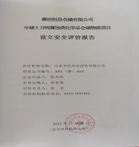潍坊恒昌仓储有限公司是一家从事货物仓储服务等业务的公司,成立于2023 年 09 月 12 日,公司坐落在山东省,详细地址为:山东省潍坊市滨海区大家洼街道临港路以东、黄河西街以北;法人是韩士卫,注册资本为 300 万元,企业的经营范围为:一般项目:普通货物仓储服务(不含危险化学品等需许可审批的项目)。(除依法须经批准的项目外,凭营业执照依法自主开展经营活动)。 为拓展区内业务,服务于潍坊滨海石油化工、新和成化工、国邦药业、海化氯碱等本地化工龙头企业,同时服务于国际港口化工贸易仓储运输,潍坊恒昌仓储有限公司投资 18000 万元,拟建设“年储 5 万吨腐蚀类化学品仓储物流项目”(以下简称为“该项目”)。该项目于 2023 年 9 月 18 日取得山东省建设项目备案证明,项目代码:2309-370772-89-01-587120。项目建成后是本区唯一专业的第八类腐蚀化学品仓储运输企业,有稳定的客户需求,经济效益良好。 根据《危险化学品目录(2015 版)》(2022 年调整),该项目储存品种:盐酸(31%)、液碱(32%)、氢溴酸(48%)、溴素均属于危险化学品,因此该项目属于新建危险化学品储存经营项目。 为贯彻“安全第一、预防为主、综合治理”的安全生产方针,根据《中华人民共和国安全生产法》(中华人民共和国主席令[2002]第 70 号,经主席令[2009]第 18 号修订,经主席令[2014]第 13 号修订,经主席令[2021]第 88 号修订)《危险化学品建设项目安全监督管理办法》(国家安全生产监督管理总局令[2012]第 45 号,经国家安全生产监督管理总局令[2015]79 号修订)等的有关要求,该项目需进行设立安全评价。为此,潍坊恒昌仓储有限公司委托山东古天乐太阳集团城入口安全评价有限公司依据国家有关安全生产法律、法规、规范标准要求,对该公司年储 5 万吨腐蚀类化学品仓储物流项目进行设立安全评价工作。 我公司接受委托后,成立了评价组,按照《安全评价通则》 (AQ8001-2007)和《安全预评价导则》(AQ8002-2007)对设立安全评价工作的程序要求,在对该项目相关资料充分了解和分析的基础上,以该项目《项目申请报告》为主要依据,根据设立安全评价工作的有关要求,收集了相关资料,对项目的危险、有害因素进行了辨识与分析,根据主要危险、有害因素的分布及评价单元的划分原则划分了评价单元,采用定性、定量的评价方法对该项目固有危险程度和风险程度进行了评价,提出了补充的安全对策措施和建议,做出了安全评价结论,并编制完成了安全评价报告。 |