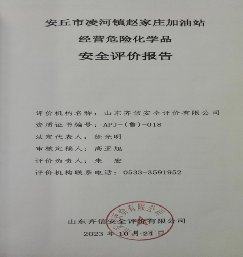 安丘市凌河镇赵家庄加油站位于安丘市凌河镇区西赵家庄下小路111公里+700米路北侧。该站成立于2009年03月26日,取得安丘市市场监督管理局颁发的营业执照。该加油站经营范围: 经营范围包括零售:汽油、柴油(有效期限以许可证为准);销售:润滑油、五金产品、建筑材料、日用品百货。(依法须经批准的项目,经相关部门批准后方可开展经营活动)。类型为个人独资企业。 该加油站现有埋地油罐4个,储罐均为埋地双层SF卧式储罐,单罐容积均为30m3,汽油罐2个,柴油罐2个,柴油折半计入,该加油站油罐总容积为90m3,根据《汽车加油加气加氢站技术标准》(GB50156-2021)第3.0.9条之规定,为三级加油站。 因《危险化学品目录(2015版)》(应急管理部 工业和信息化部 公安部 生态环境部 交通运输部 农业农村部 卫生健康委 市场监管总局 铁路局 民航局 公告[2022]第8号)将“1674柴油[闭杯闪点≤60℃]”调整为“1674柴油”),2023年03月03日换发了危险化学品经营许可证,证书编号为:鲁潍危化经[2020] 008039号,有效期至2023年12月30日;于2020年05月20日换发了成品油零售经营许可证(证书编号:鲁油零售证书第3707063006号),有效期至2025年05月20日。 该加油站现有职工8人,其中站长1人,安全员1人,站长和安全员已通过安全生产知识和管理能力考核合格,并取证;其他从业人员按照国家有关规定,经安全教育和培训并考核合格。 依据《中华人民共和国安全生产法》(中华人民共和国主席令[2002]第70号,根据2021年6月10日中华人民共和国第十三届全国人民代表大会常务委员会第二十九次会议《全国人民代表大会常务委员会关于修改〈中华人民共和国安全生产法〉的决定》修正)、《危险化学品安全管理条例》(国务院令第591号,根据国务院令第645号修订)、《危险化学品经营许可证管理办法》(国家安全生产监督管理总局令第55号,根据安监总局令第79号修订)的要求,危险化学品经营许可证换发需进行安全评价,因此,安丘市凌河镇赵家庄加油站委托山东古天乐太阳集团城入口安全评价有限公司进行经营危险化学品安全评价。 接受委托后,山东古天乐太阳集团城入口安全评价有限公司成立评价组,在进行资料与标准收集、现场调研、项目资料分析、危险与有害因素分析的基础上,依据《安全评价通则》(AQ8001-2007)、《山东省加油站安全评价导则》(鲁安监发〔2006〕114号),通过对该加油站安全管理、站址选择及总平面布置、加油工艺及设施、其他设施等方面的审查,选择相应的评价方法对其危险、有害因素进行辨识和评价,编写完成了《安丘市凌河镇赵家庄加油站安全评价报告》。 |