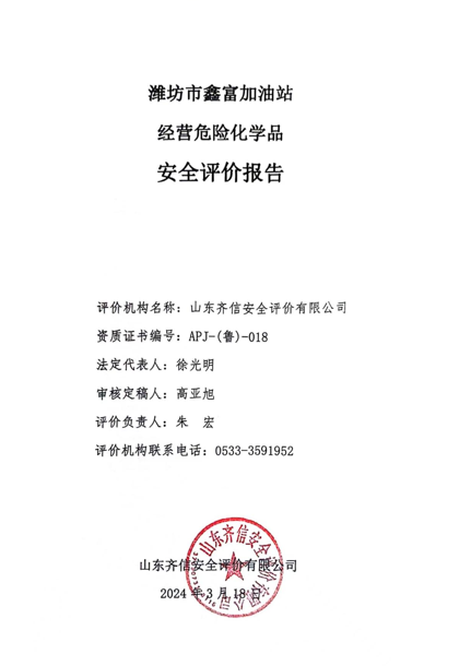 潍坊市鑫富加油站成立于2016年11月02日,注册地位于山东省潍坊市坊子区309国道24公里处路北,投资人梁志。经营范围包括带有储存设施的经营:销售:汽油、柴油(有效期限以许可证为准)、润滑油、日用百货、香烟、食品。(依法须经批准的项目,经相关部门批准后方可开展经营活动)。 该加油站现有埋地油罐4个,储罐均为内钢外玻璃纤维增强塑料双层罐,92#汽油罐、2个柴油罐单罐容积均为30m3,95#汽油罐单罐容积为20m3,汽油罐2个,柴油罐2个,柴油折半计入,该加油站油罐总容积为80m3,根据《汽车加油加气加氢站技术标准》(GB50156-2021)第3.0.9条之规定,为三级加油站。 因《危险化学品目录(2015版)》(应急管理部 工业和信息化部 公安部 生态环境部 交通运输部 农业农村部 卫生健康委 市场监管总局 铁路局 民航局 公告[2022]第8号)将“1674柴油[闭杯闪点≤60℃]”调整为“1674柴油”),2023年2月22日换发了危险化学品经营许可证,证书编号为:鲁潍危化经[2021] 004101号,有效期至2024年4月27日;于2021年5月18日换发了成品油零售经营许可证(证书编号:鲁油零售证书第3707043027号),有效期至2026年5月18日。 该加油站现有职工10人,其中站长1人,安全员1人,站长和安全员已通过安全生产知识和管理能力考核合格,并取证。 依据《中华人民共和国安全生产法》(中华人民共和国主席令[2002]第70号,根据2021年6月10日中华人民共和国第十三届全国人民代表大会常务委员会第二十九次会议《全国人民代表大会常务委员会关于修改〈中华人民共和国安全生产法〉的决定》修正)、《危险化学品安全管理条例》(国务院令第591号,根据国务院令第645号修订)、《危险化学品经营许可证管理办法》(国家安全生产监督管理总局令第55号,根据安监总局令第79号修订)的要求,危险化学品经营许可证换发需进行安全评价,因此,潍坊市鑫富加油站委托山东古天乐太阳集团城入口安全评价有限公司进行经营危险化学品安全评价。 接受委托后,山东古天乐太阳集团城入口安全评价有限公司成立评价组,在进行资料与标准收集、现场调研、项目资料分析、危险与有害因素分析的基础上,依据《安全评价通则》(AQ8001-2007)、《山东省加油站安全评价导则》(鲁安监发〔2006〕114号),通过对该加油站安全管理、站址选择及总平面布置、加油工艺及设施、其他设施等方面的审查,选择相应的评价方法对其危险、有害因素进行辨识和评价,编写完成了《潍坊市鑫富加油站安全评价报告》。 |