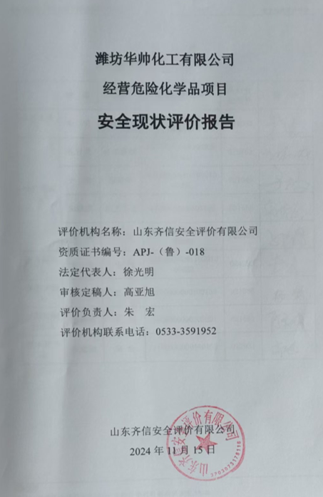 潍坊华帅化工有限公司成立于2002年12月13日,法定代表人为刘清华,注册资本为50万元人民币,企业地址位于潍坊市潍州路十五公里路东100米,所属行业为批发业,经营范围包含:批发、零售(有储存):二氧化碳、氩、氧;批发、零售(无储存):乙炔、丙烷、氮气、高纯氦、高纯氢气、高纯二氧化碳、液氮、高纯空气、高纯氧、氩甲烷混合气;批发、零售(无储存):润滑油、煤碳;生产、销售:WHS-1000胶钛表面调整剂、WHS-3000高效脱脂剂、WHS-2000金属表面处理液;水净化剂、锅炉配件、节能器;合同能源管理、节能技术服务与咨询。(依法须经批准的项目,经相关部门批准后方可开展经营活动)。潍坊华帅化工有限公司目前的经营状态为在营(开业)企业。 2024年8月,潍坊华帅化工有限公司委托山东古天乐太阳集团城入口安全评价有限公司对其经营的危险化学品及经营安全条件进行安全评价。 山东古天乐太阳集团城入口安全评价有限公司接受委托后,成立了安全评价组,双方确定了安全评价范围,根据该公司提供的装置的有关技术资料,在现场实地勘察的基础上,对该公司的安全生产现状进行了安全评价,针对该公司存在的危险、有害因素及现场检查时发现的问题,依据国家安全生产有关法律、法规、标准、规范及文件等提出了安全对策措施与建议,编制完成了本安全现状评价报告。 该项目评价以建设单位提供的工艺、设备、物料、操作工况及自控联锁关系等资料为基础进行分析评价,建设单位提供资料的真实性和完整性很大程度上对本报告的可信度及质量产生极大影响。项目如有工艺、设备、物料等改动或改建、扩建,则不在本次评价范围之内。 本着为提高项目安全生产水平,为企业安全管理提供服务,为政府部门安全监管提供依据的宗旨,本次在评价过程中严格贯彻了“安全第一、预防为主、综合治理”的安全生产方针,遵守了国家相关的法律、法规、规程、标准和政府相关文件,参考了类似项目的监测资料,借鉴了同行业的技术成果。同时安全管理为动态过程,随着时间的变化,安全状态也在持续变化,故本次评价只对评价时的安全状态进行辨识评价,不能保证后续安全状态的变化,企业务必加强安全管控以确保生产安全。 |