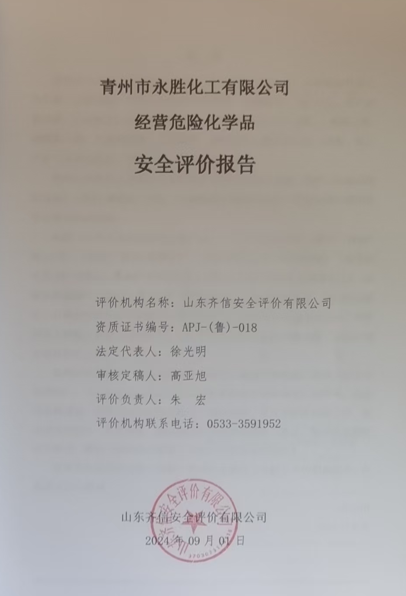 青州市永胜化工有限公司成立于2003年01月27日,公司法定代表人为牛林。经营地址:青州市丰收路东段路北,注册资本:103万元。生产经营范围:正磷酸带有储存设施的经营(有效期限以许可证为准),磷酸三钠、磷酸氢二钠、六偏磷酸钠、焦磷酸钠、磷酸氢钠、醋酸钠制造、销售,化工产品(不含危险品)销售。 青州市永胜化工有限公司目前设有正磷酸的储存设施。根据《危险品化学目录》(2022调整版)可知,正磷酸属于危险化学品,该企业属于危险化学品储存经营企业。 根据《中华人民共和国安全生产法》(中华人民共和国主席令〔2014〕第13号,〔2021〕第88号修订)、《危险化学品安全管理条例》(国务院令第591号颁布,第645号修改)及《危险化学品经营许可证管理办法》(国家安监总局令〔2012〕第55号,79号令修订)的规定和要求,青州市永胜化工有限公司评价报告到期需对本厂经营安全条件进行安全现状评价。受青州市永胜化工有限公司的委托,山东古天乐太阳集团城入口安全评价有限公司承担了该企业安全现状评价工作。 接到评价委托后,我公司依据企业特点,组成了评价组,根据《安全评价通则》、《山东省其他危险化学品经营单位安全评价导则》的要求,在进行实地调查、资料收集分析的基础上,通过定性、定量评价和科学分析,找出潜在的危险、有害因素,提出相应的安全对策措施与建议,得出安全现状评价结论,编制《青州市永胜化工有限公司安全评价报告》。 |