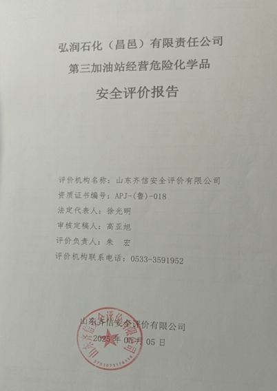 弘润石化(昌邑)有限责任公司第三加油站位于山东省潍坊市昌邑市围子街道宋庄东村东北下小路路东500米,成立于2025年03月30日,取得昌邑市行政审批服务局核发的营业执照,类型为有限责任公司分公司,负责人潘维明。经营范围一般项目:化工产品销售(不含许可类化工产品)。 该站前身为昌邑市万顺加油站,2009年5月21日更名为山东昌邑石化有限公司第三加油站,2025年03月30日更名为弘润石化(昌邑)有限责任公司第三加油站,营业执照和危险化学品经营许可证、成品油零售许可证随后进行了变更。 该站持有的《成品油零售经营批准证书》(证书编号:鲁油零售证书第3707083016号),有效期自2025年4月10日至2030年6月10日;《危险化学品经营许可证》(证书编号:37070013202500036号),有效期自2022年5月20日至2025年5月19日。该站在营业期间未发生安全事故。 该加油站现有埋地油罐5台,储罐均为埋地双层SF卧式储罐,汽油罐3台,柴油罐2台,单罐容积均为50m3,柴油折半计入,该加油站油罐总容积为200m3,根据《汽车加油加气加氢站技术标准》(GB50156-2021)第3.0.9条之规定,为一级加油站。 该加油站现有从业人员9人,其中安全管理人员1名。该站已建立了安全生产责任制度、安全管理制度和安全操作规程等,制定了生产安全事故应急救援预案,成立了安全生产领导小组,配备了安全员,主要负责人和安全员取得了安全生产知识和管理能力考核合格证。其他从业人员经本单位三级培训考核合格。 依据《中华人民共和国安全生产法》(中华人民共和国主席令[2002]第70号,根据2021年6月10日中华人民共和国第十三届全国人民代表大会常务委员会第二十九次会议《全国人民代表大会常务委员会关于修改〈中华人民共和国安全生产法〉的决定》修正)、《危险化学品安全管理条例》(国务院令第591号,根据国务院令第645号修订)、《危险化学品经营许可证管理办法》(国家安全生产监督管理总局令第55号,根据安监总局令第79号修订)的要求,公司更换名称、法人代表,危险化学品经营许可证换发需进行安全评价,因此,弘润石化(昌邑)有限责任公司第三加油站委托山东古天乐太阳集团城入口安全评价有限公司进行经营危险化学品安全评价。 接受委托后,我公司立即成立评价组,在进行资料与标准收集、现场调研、项目资料分析、危险与有害因素分析的基础上,依据《山东省加油站安全评价导则》(鲁安监发[2006]114号),在经营单位的通力合作下,对加油站进行了评价并编写完成了《弘润石化(昌邑)有限责任公司第三加油站经营危险化学品安全评价报告》。 |