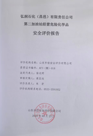 弘润石化(昌邑)有限责任公司第二加油站位于山东省潍坊市昌邑市都昌街道昌进西路北北海路西,成立于2025年03月30日,取得昌邑市行政审批服务局核发的营业执照,类型为有限责任公司分公司(非自然人投资或控股的法人独资),负责人潘维明。经营范围一般项目:化工产品销售(不含许可类化工产品)。(除依法须经营批准的项目外,凭营业执照依法自主开展经营活动)。 该加油站前身为昌邑市昌进加油站,昌邑市昌进加油站始建于2002年6月,隶属于潍坊昌进织造有限公司,于2002年6月开始运营,2004年2月取得建筑工程消防验收意见书,2002年6月至2016年1月一直由郝建生租赁经营。2006年,潍坊昌进织造有限公司破产,其名下资产包括昌邑市昌进加油站转入山东昌邑石化有限公司。山东昌邑石化有限公司于2007年办理了该加油站的土地使用证。2008年郝建生与山东昌邑石化有限公司签订了加油站租赁合同;2016年,山东昌邑石化有限公司将该加油站收回,双方签订了《协议书》,2016年8月3日该加油站更名为山东昌邑石化有限公司第二加油站,2024年9月20日,山东昌邑石化有限公司破产,2025年3月28日山东昌邑石化有限公司破产财产所有权归属于弘润石化(昌邑)有限责任公司,包括山东昌邑石化有限公司第二加油站,2025年03月30日该加油站更名为弘润石化(昌邑)有限责任公司第二加油站,营业执照和危险化学品经营许可证、成品油零售许可证随后进行了变更。 该站持有的《成品油零售经营批准证书》(证书编号:鲁油零售证书第3707083025号),有效期自2025年4月10日至2030年4月10日;《危险化学品经营许可证》(证书编号:37070013202500037号),有效期自2022年8月1日至2025年7月31日。该站在营业期间未发生安全事故。 该加油站现有埋地油罐5台(单罐容积均为30m3,其中2台闲置,三台在用,3台在用储罐中有2台汽油罐,1台柴油罐),储罐均为埋地双层SF卧式储罐,柴油折半计入,该加油站油罐总容积为75m3,根据《汽车加油加气加氢站技术标准》(GB50156-2021)第3.0.9条之规定,为三级加油站。 该加油站现有从业人员6人,设有站长1人,安全管理人员1名。该站已建立了安全生产责任制度、安全管理制度和安全操作规程等,制定了生产安全事故应急救援预案,成立了安全生产领导小组,配备了安全员,主要负责人和安全员取得了安全生产知识和管理能力考核合格证。其他从业人员经本单位三级培训考核合格。 依据《中华人民共和国安全生产法》(中华人民共和国主席令[2002]第70号,根据2021年6月10日中华人民共和国第十三届全国人民代表大会常务委员会第二十九次会议《全国人民代表大会常务委员会关于修改〈中华人民共和国安全生产法〉的决定》修正)、《危险化学品安全管理条例》(国务院令第591号,根据国务院令第645号修订)、《危险化学品经营许可证管理办法》(国家安全生产监督管理总局令第55号,根据安监总局令第79号修订)的要求,公司更换名称、主要负责人,危险化学品经营许可证换发需进行安全评价,因此,弘润石化(昌邑)有限责任公司第二加油站委托山东古天乐太阳集团城入口安全评价有限公司进行经营危险化学品安全评价。 接受委托后,我公司立即成立评价组,在进行资料与标准收集、现场调研、项目资料分析、危险与有害因素分析的基础上,依据《山东省加油站安全评价导则》(鲁安监发[2006]114号),在经营单位的通力合作下,对加油站进行了评价并编写完成了《弘润石化(昌邑)有限责任公司第二加油站经营危险化学品安全评价报告》。 |